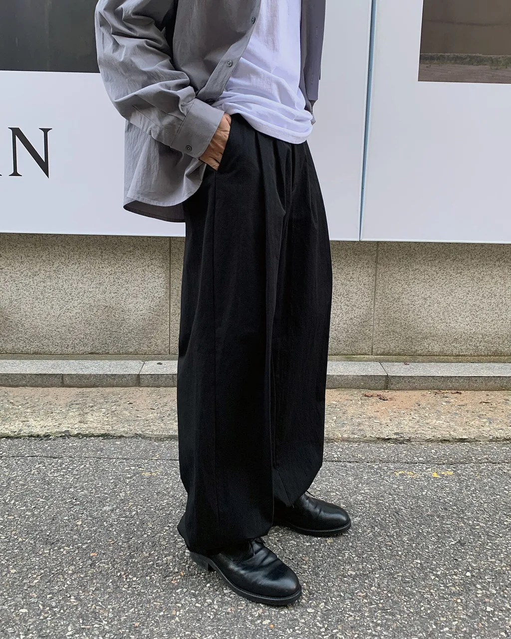 -兩褶打褶延伸到褲管的折線設計,再加上褲管的半鬆緊細節