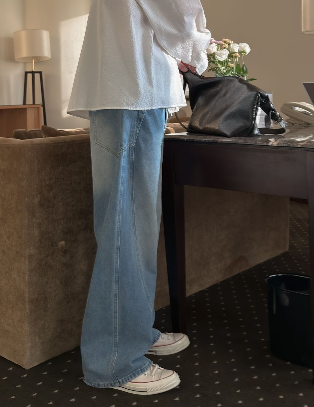 -寬短剪裁版型,同時增加整體廓形感與腿長長度